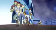 He is often shown constructing various Rube Goldberg traps for villains, which Scooby-Doo and/or Shaggy would often set off by mistake, only for the villain to wind up captured by the trap anyway. Fred leads the group in solving mysteries and often orders the gang to split up to search for clues. Fred usually takes Daphne and Velma with him while Shaggy and Scooby go off by themselves (sometimes sending Scooby-Dum or Scrappy-Doo with them should they be present for the mystery), although he would sometimes send Velma along with Shaggy and Scooby. He is also very muscular, as seen in Scooby-Doo! Pirates Ahoy!, and is revealed numerous times in What's New to be able to bench-press 220 (with an implication that his Uncle Karl can bench-press fare more).