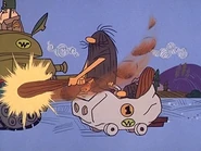 During the race, Dick Dastardly uses various construction vehicles in attempts to sabotage the other racers. Also, Penelope Pitstop does some emergency repairs on her car.