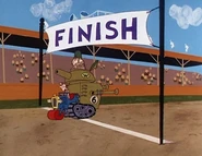 - At one point in the race, the announcer mistakenly refers to Rufus Ruffcut's pet beaver as Buzzsaw rather than Sawtooth.