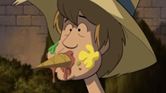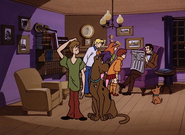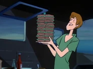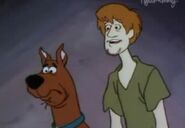 - In "A Gaggle of Galloping Ghosts", Shaggy has Velma's spare glasses.