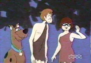 - In "The Backstage Rage", Velma clings to Shaggy when she is scared.