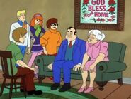 - In "A Night of Fright Is No Delight", Velma holds Shaggy's hand while they look for clues in the caves under the mansion.