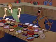 Both his and Scooby's cowardice (as well as their appetites) have become so ingrained in their characters that they are often portrayed as being expert cowards. Both Shaggy and Scooby are adept runners Shaggy mentions how he used to be a track runner in one of the episodes, they have become skilled contortionists (this is shown in the very first episode of Scooby Doo where are you when Shaggy has to vault himself up into a open museum window to unlock the door for the gang, Velma or Daphne also mention how Shaggy is the best Gymnast at school), due to learning to hide in small places, experts at building barricades from various kinds of furniture and other household objects (even designing one to be collapsible just in case they need to use the barricaded door/entrance as an escape route from the monster/villain), they're both great with disguises as shown when they are usually able to fool the monster/villain for enough time to get away from them, Shaggy has also been shown to be a Great Ventriloquist. They are also experts in what is scary (both Shaggy and Scooby have been shown to use each other's fears in their competitions in stealing one another's food) due to their being craven cowards. In the episode "Camp Comeoniwannascareya" they use this knowledge to help a fellow camp counselor and the campers scare off the camp's greedy owner who wishes to turn the summer camp into a resort for adults and children.