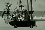 No later than 1961, the characters began appearing "in person" at events across America. Hanna Barbera commissioned costumed characters of Huckleberry Hound, Yogi Bear, and Quick Draw McGraw, which appeared at events like the Florida State Fair.[4] Hanna-Barbera owner Taft Broadcasting started opening theme parks in 1972, beginning with King's Island. These parks included areas themed to the company's cartoons, and included walk-around characters of Huckleberry Hound, Yogi Bear, and others. The characters were also featured on rides, including carousels.