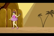 She is usually seen wearing a baggy orange sweater, red knee-length pleated skirt, orange knee-high socks, white panties (in A Pup Named Scooby Doo!) and Mary Jane shoes that match her skirt.
